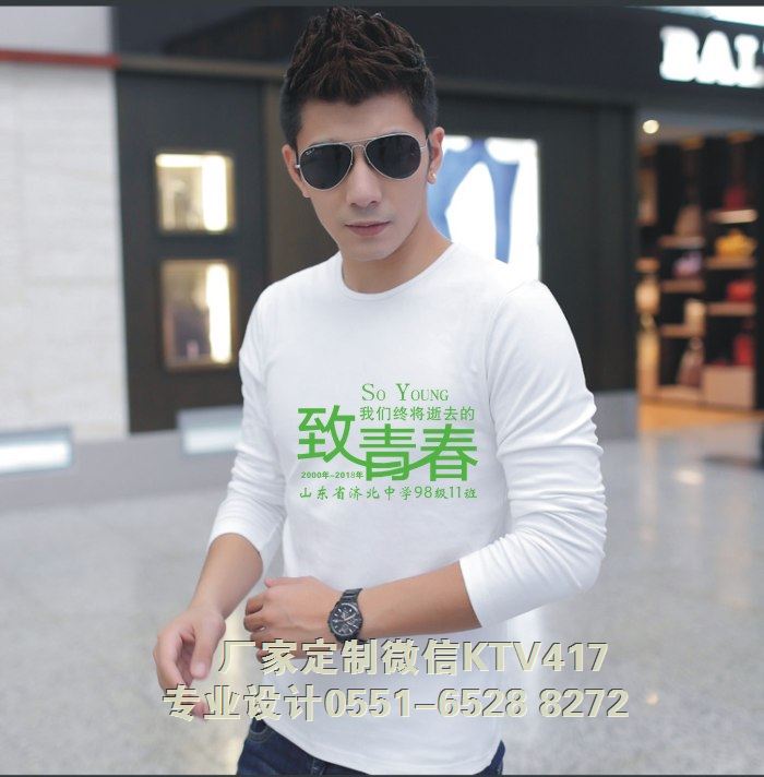 致青春長袖白色文化衫,長袖聚會服。圓領長袖文化衫