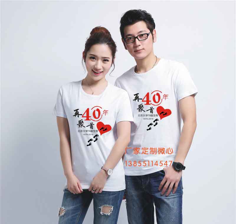 40年同學聚會服裝圖片,40同學聚會文化衫圖案,四十年聚會紀念衫定制上了歲數的人,都有懷舊情結,出生60年代的人,大部分都是艱苦歲月走過來的人,同學們都很重感情,比00后小年輕強多了。40年聚會的同學們都是花甲之人,聚會服裝都喜歡搞點簡單大方的,太花哨的服裝已不適合40年聚會的人了!