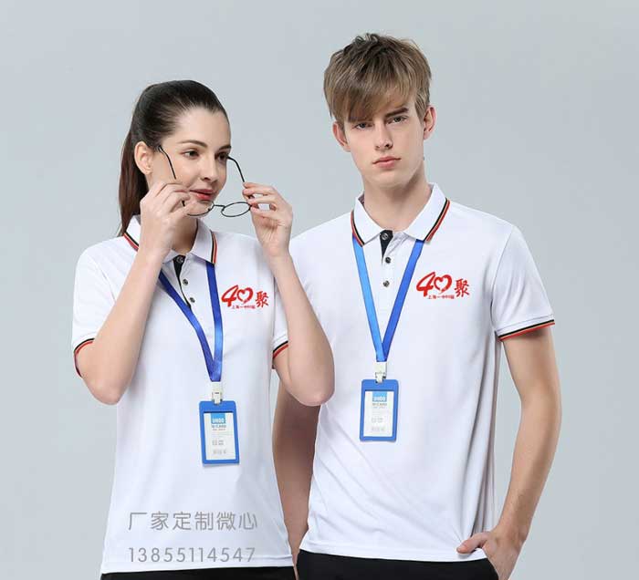 翻領款聚會服裝,相對于圓領服裝,價格高點。適合對服裝款式有要求的聚會班級。常用的翻領服裝顏色也是白色,紅色。